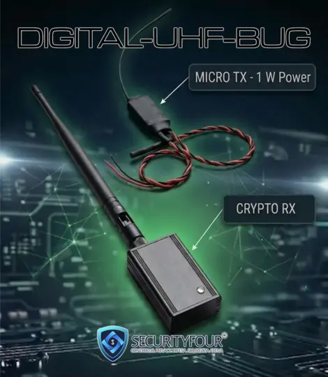 DIGITAL-UHF-BUG KIT è una microspia UHF digitale ad alta potenza composta da: